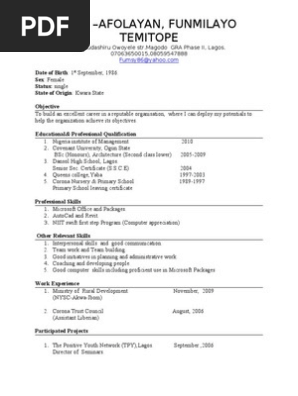 Write your resume and upload it immediately in less than 5 minutes. Every job seeker needs a curriculum vitae, otherwise known simply as cv. In this article today, i will be showing you 15 features on how to write a standard curriculum vitae (cv) in nigeria. We have easy to use cv templates for candidates with no experience as well as cv templates for professionals. It is what makes the first contact with the employer. It reveals the expectations of every employer, the basic inclusions every cv should have, how qualitative and quantitative the work should be, how long or how brief, and of course, what details should be considered relevant to warrant inclusion. Tips on how to write a good cv since the completion is rife in the job market, a fresh graduate in nigeria is expected to follow these tips in order to draft a convincing cv, one thing you should note is that there is no 'best way' to write a cv, you can be creative but there are certain things to take not of. In this section of the cv format in nigeria you need to include any education you've received starting from secondary school. These students in turn enter the university without prior knowledge of writing, making it difficult for most graduates especially in nigeria to write an ordinary article talk more of a curriculum vitae. Every potential employee is required to attach one to their application and so all job seekers need to know how to write a resume that will give them an edge over a lot of job seekers. How to write cv in nigeria: We will tell you about its writing in detail and offer you some tips on how to write it professionally. You will receive your cv within 48 hours, 4.